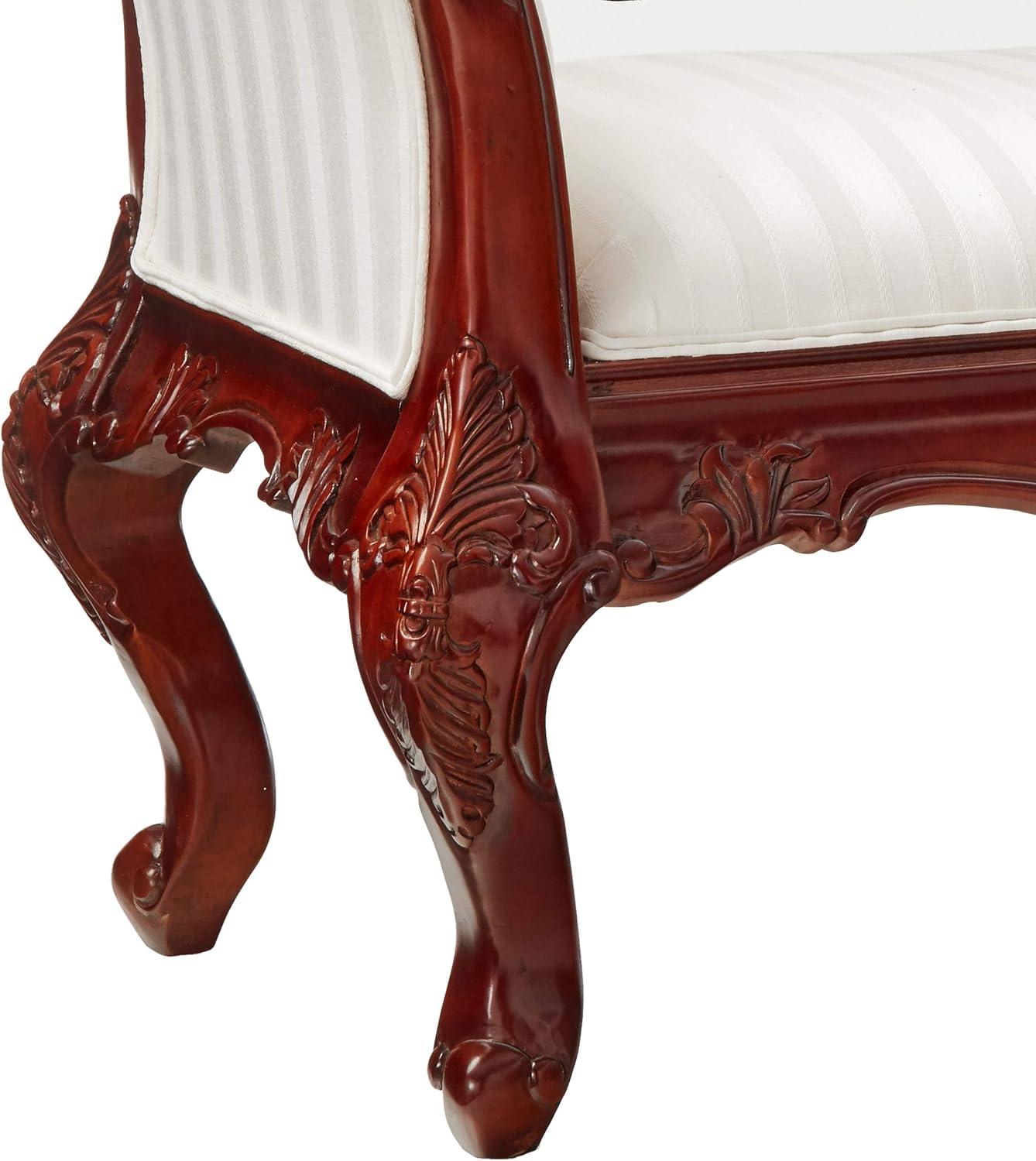 TRADITIONAL DETAILS – Raising from hand-carved wooden cabriolet legs to rolled arms, this comfortably padded, backless bench will be at home bedside, in a formal entry or your living room lounge