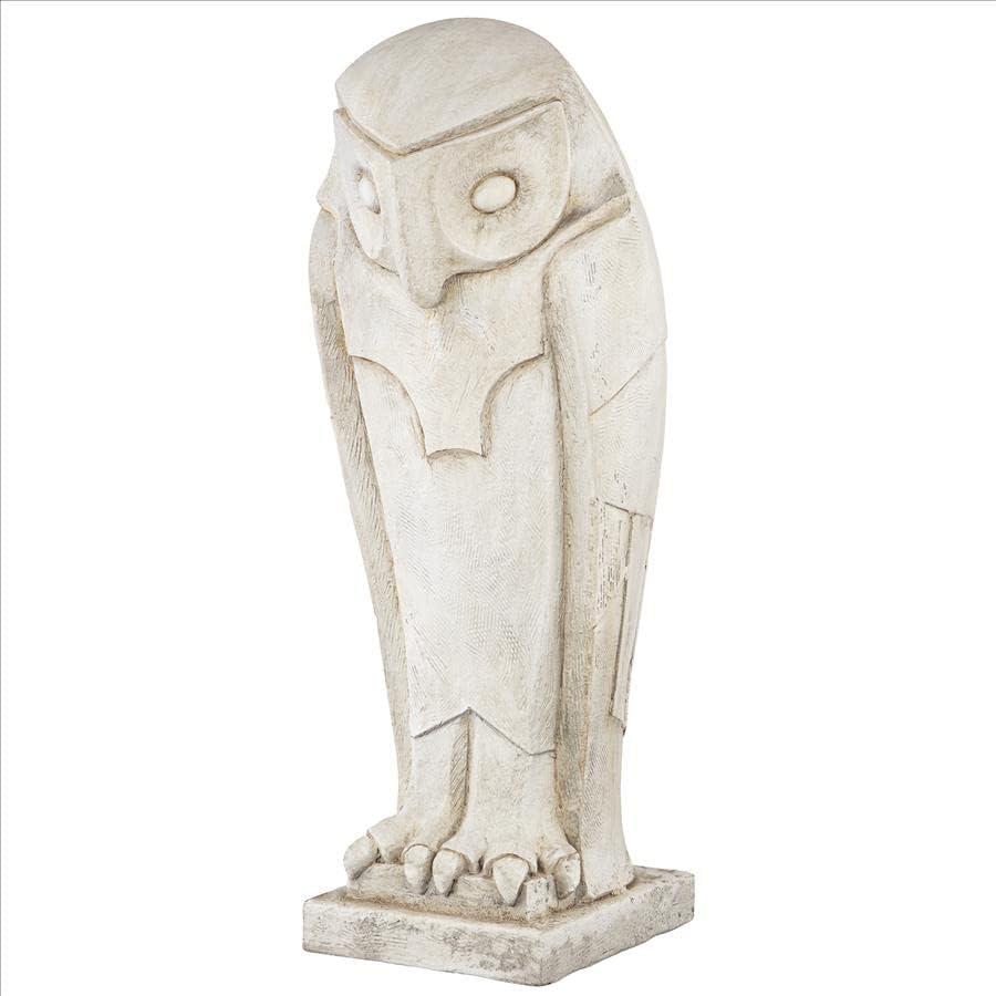 Make a modernist statement with these striking, almost yard-tall snowy white owls as symbols of wisdom, ferocity, and intuition. Flanking a doorway, a fireplace or set about a mystical garden, these works of Art Deco Cubist animalier art lend instant drama and enviably timeless style. Associated with Athena, the Greek goddess of wisdom, the majestic owl was the bird also thought to foretell wealth or positive change. Our Design Toscano artisans cast them in designer resin with a white finish to make an Art Deco artistic impression. 12″Wx14″Dx32″H. 15 lbs.