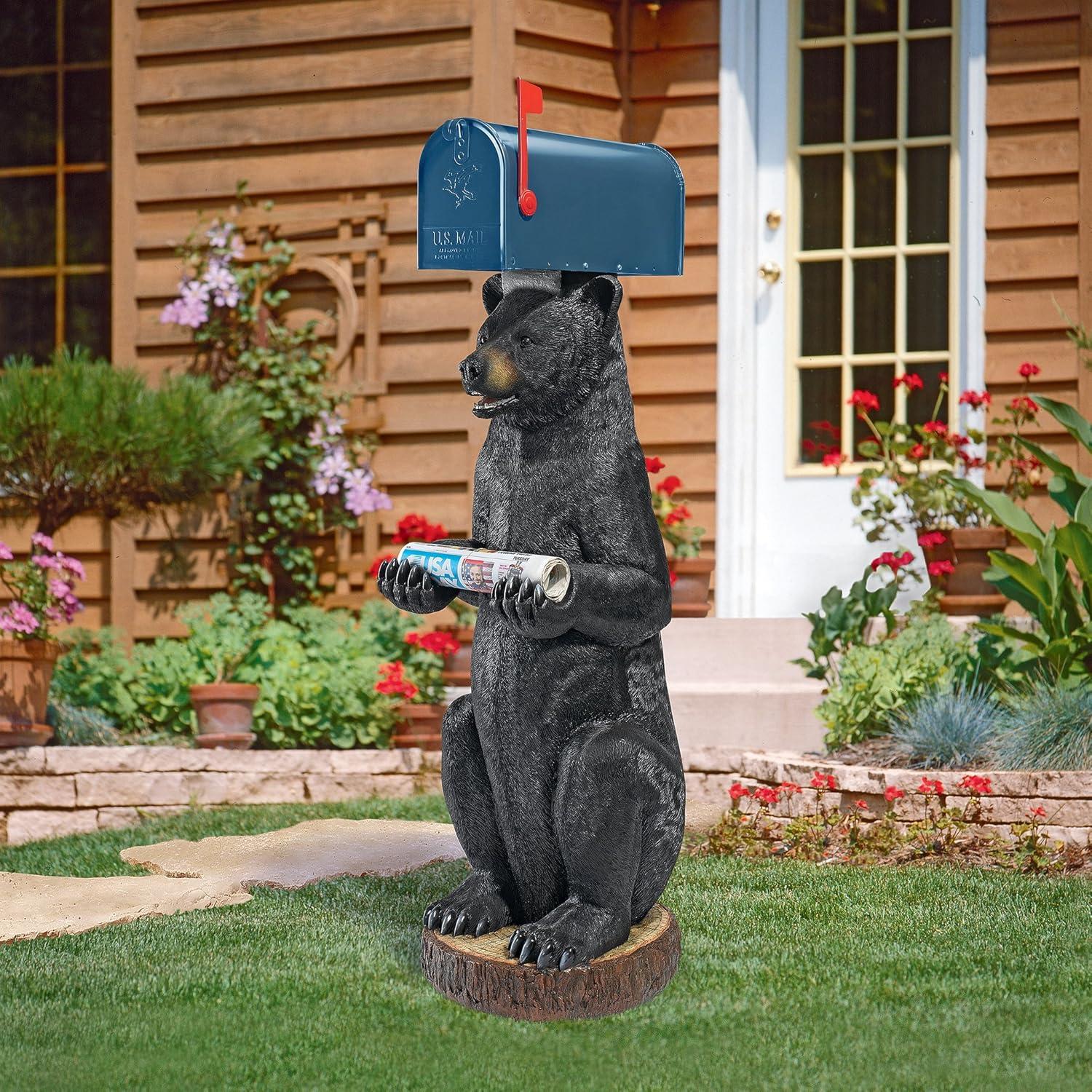 This bear's gone POSTAL! Bump up your curb appeal with something sure to make your mailbox your letter carrier's favorite stop! Ingeniously designed to fit your standard 4″x 4″ post and U.S. regulation-sized mailbox, our Postal Black Bear holds his arms wide to catch your newspaper and to help protect your mailbox from forest predators. Amazingly sculpted with detailing from grizzly fur to giant paws, this mail bear is cast in quality designer resin to withstand the elements. This Design Toscano-exclusive gift-with-an-attitude is a standout for your own home or for a friend who also loves a non-traditional look. This one's bear-y special! Note that 4″x 4″ post, US regulation sized mailbox and mounting hardware are NOT included. 16.5″Wx16.5″Dx43″H. 30 lbs.