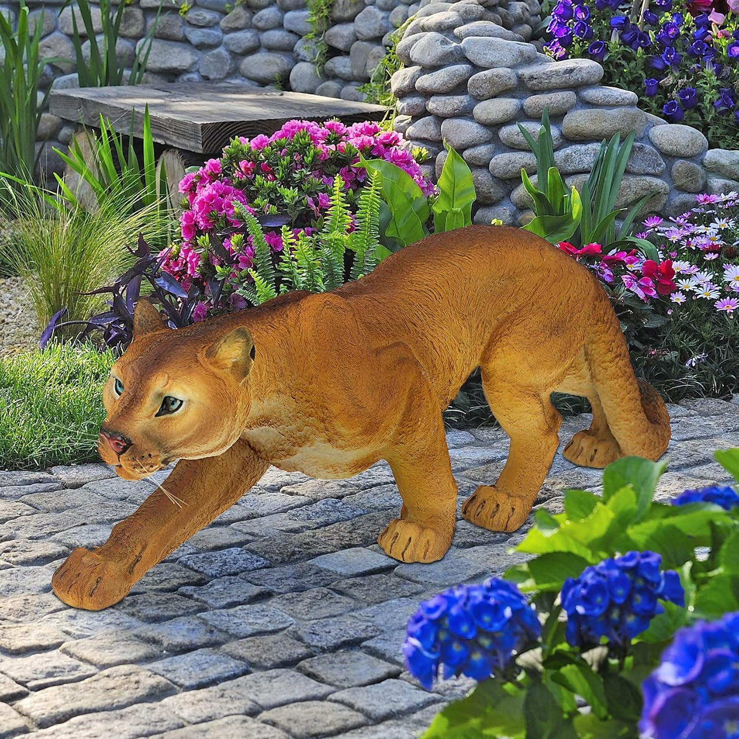 STUNNINGLY REALISTIC, almost two-foot-long cougar statue is a wild cat with the moves of a panther or puma.