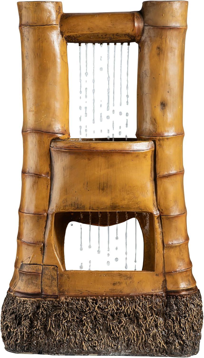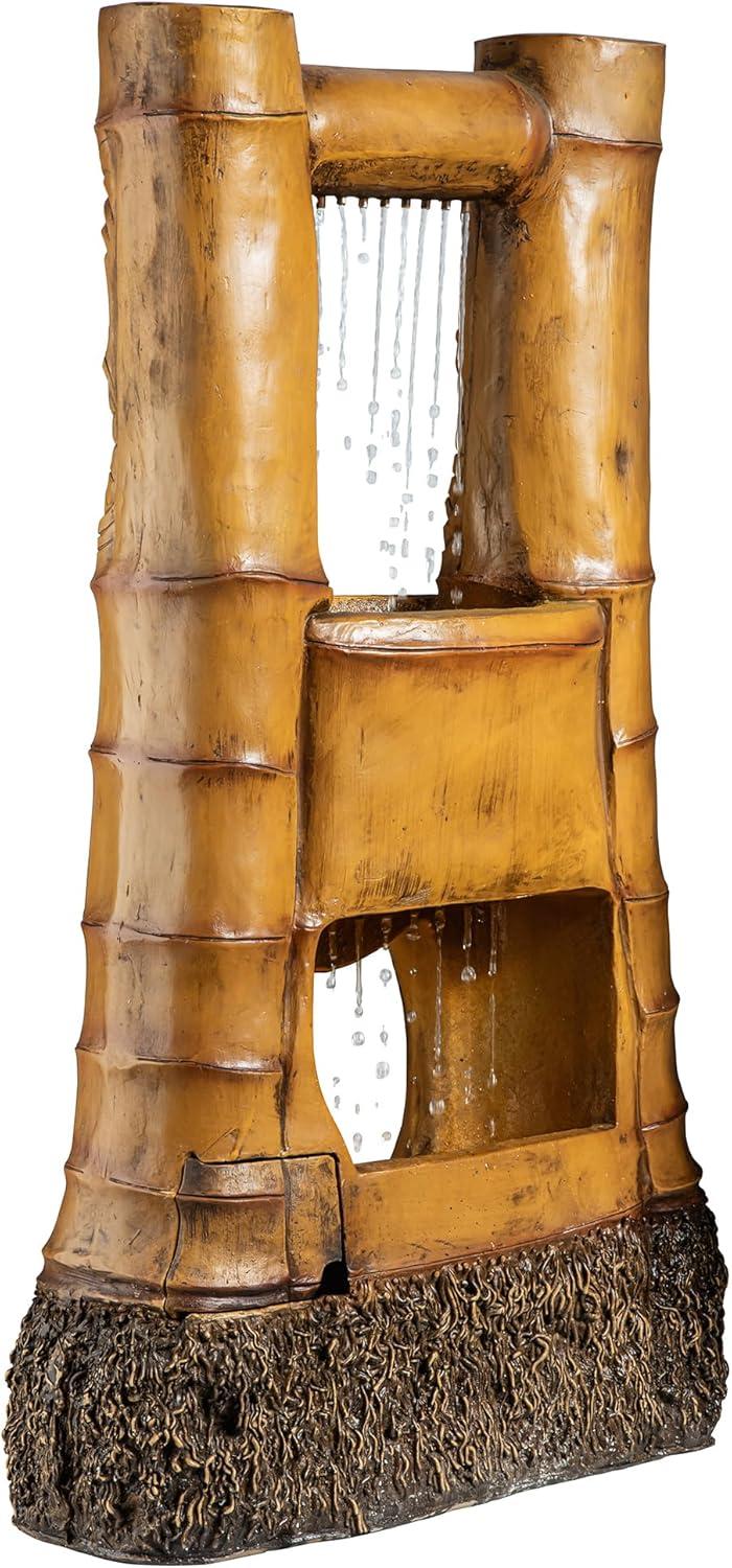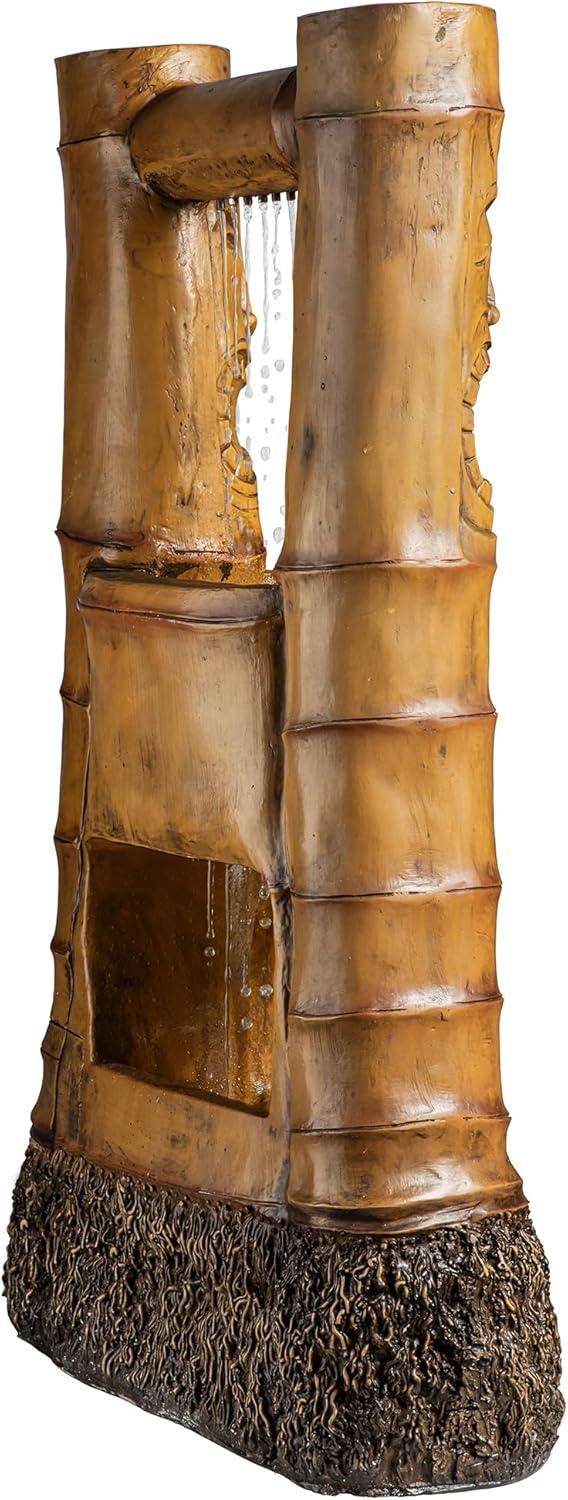 You’ll please the Tiki gods and delight party guests with our exotic island-inspired, double level, faux bamboo outdoor fountain! Guests will be sweetly serenaded by the cascading streams of tropical water music that dances from the top level to the LED-lighted lower level of the tiki god’s open mouth in this private Polynesian oasis, ready to toast your next Tiki bar garden party! While the water recirculates from a hidden reservoir using an integrated, UL-listed, indoor/outdoor pump, you’ll flip your grass skirt over this exotic, island-inspired icon. Our Design Toscano-exclusive fountain, with laughing faux bamboo Tiki faces, is cast in quality designer resin and hand-painted in retro Polynesian island hues to serve up some luau style as warm as their South Seas home and help transform your backyard or pool into an island beach resort.