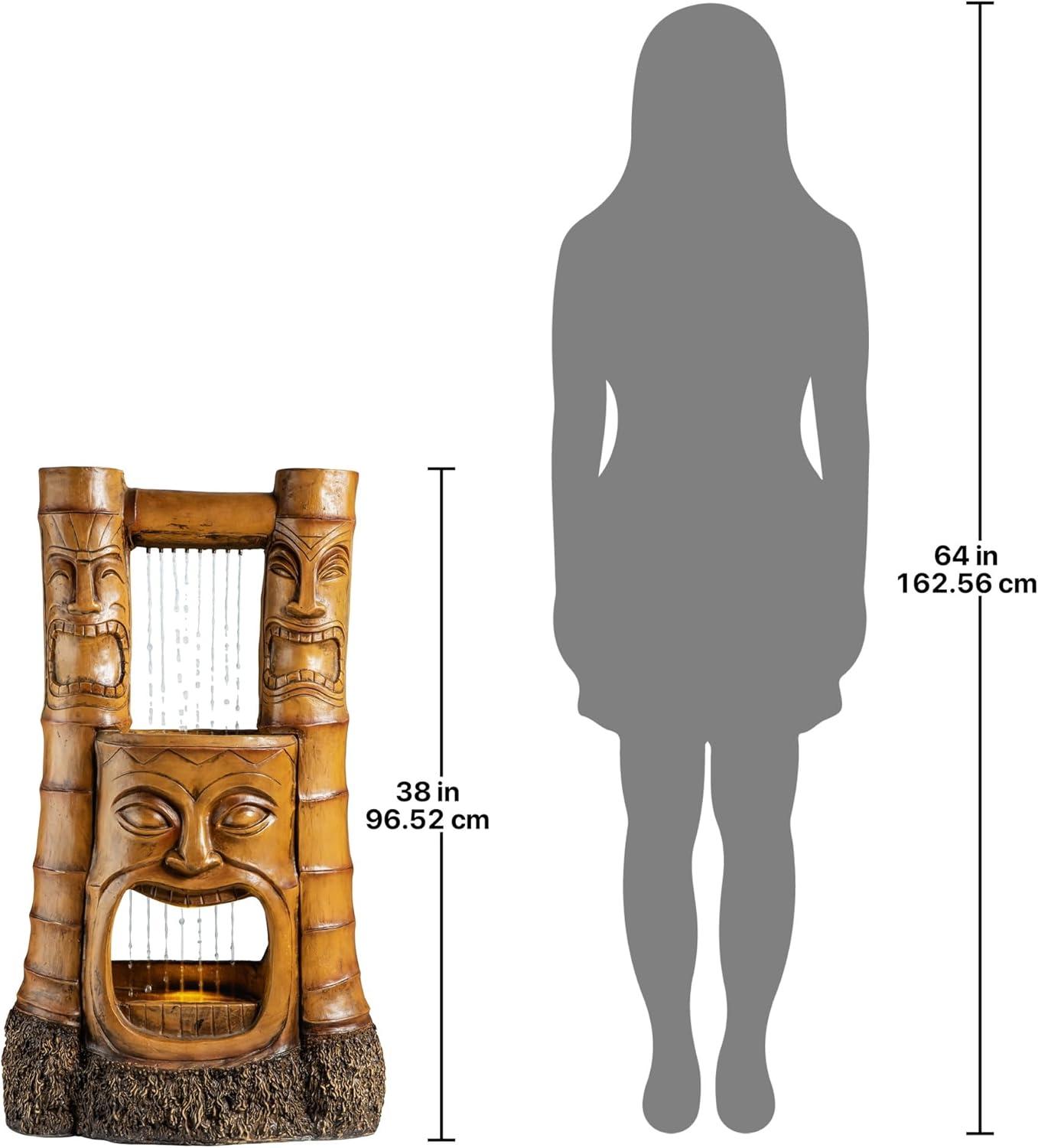 Design Toscano SH5382465 Tiki Gods of Hawaiian Islands LED Garden Fountain, 38 Inch, Brown