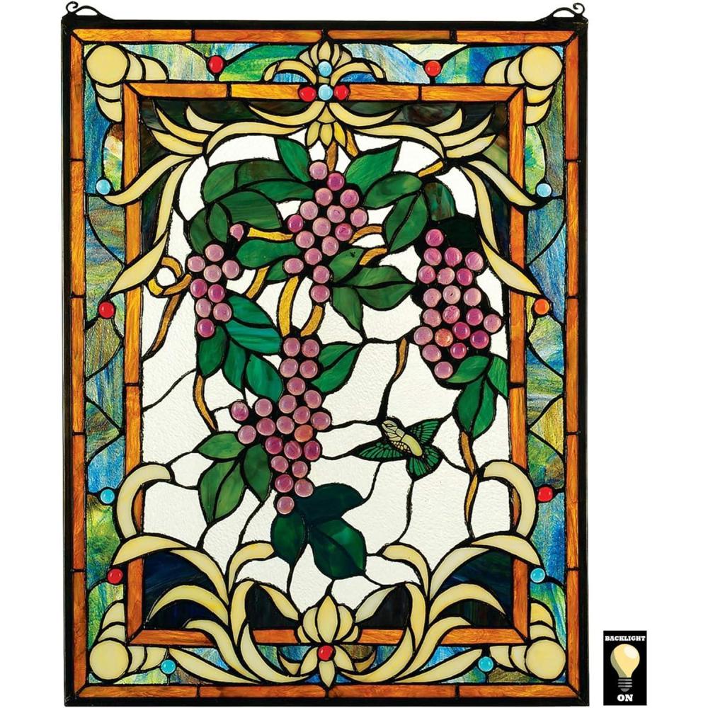 Design Toscano Stained Glass Panel – Fruit of the Vine Grape Stained Glass Window Hangings – Window Treatments, Grapes With Amber Border(Grape Vineyard Stained Glass Window)