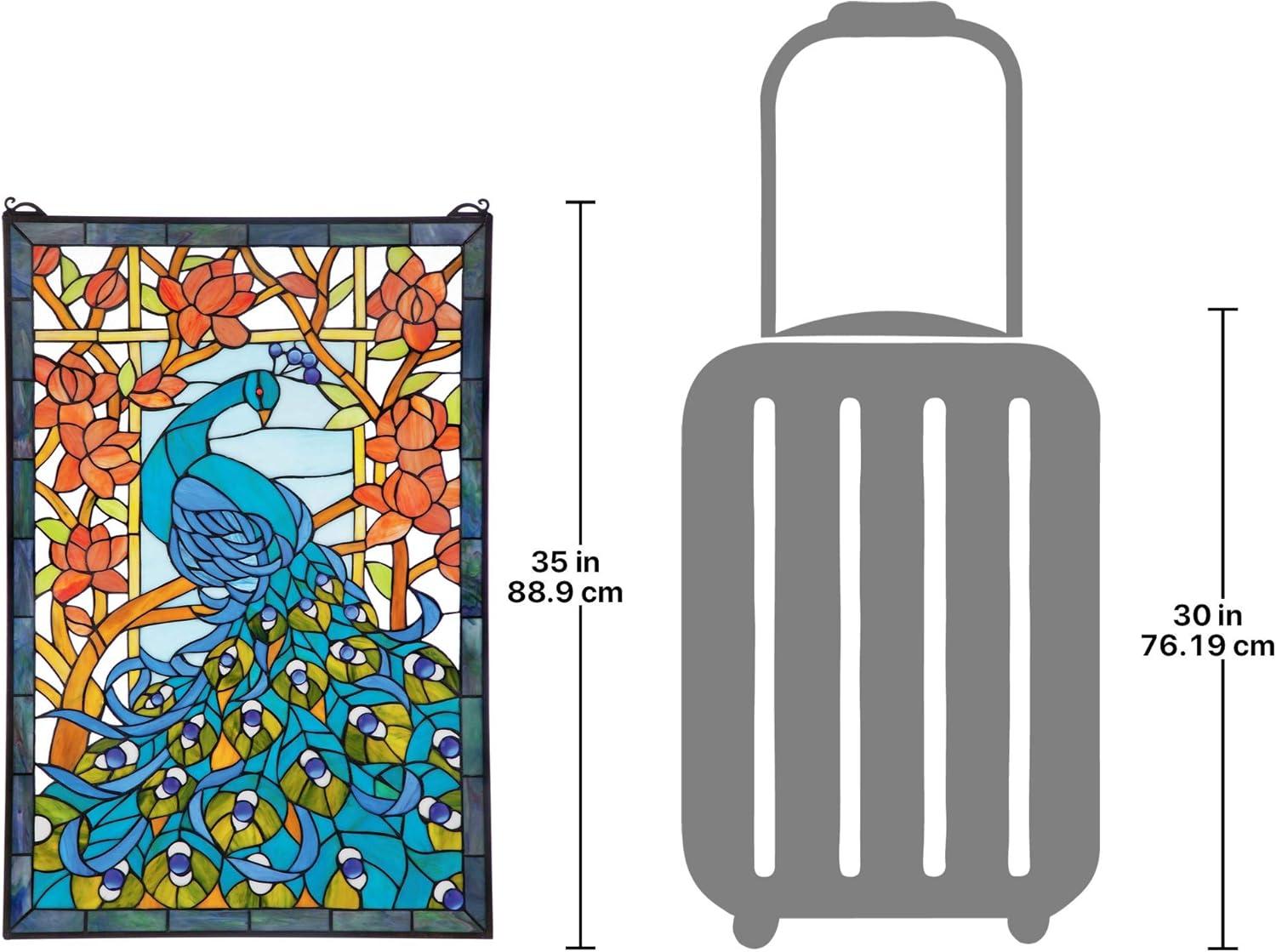 Design Toscano Stained Glass Panel -Peacock’s Sunset Stained Glass Window Hangings – Window Treatments, 10.00″ x 0.50″(Paradise)