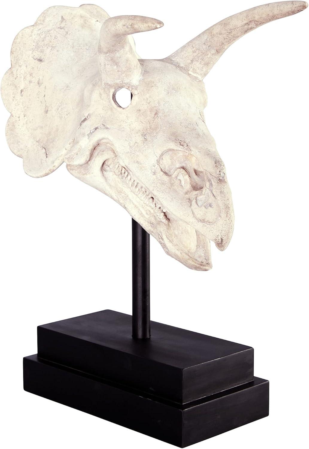 Design Toscano T-Rex Dinosaur Skull Fossil Statue on Museum Mount(Triceratops Dinosaur Skull)