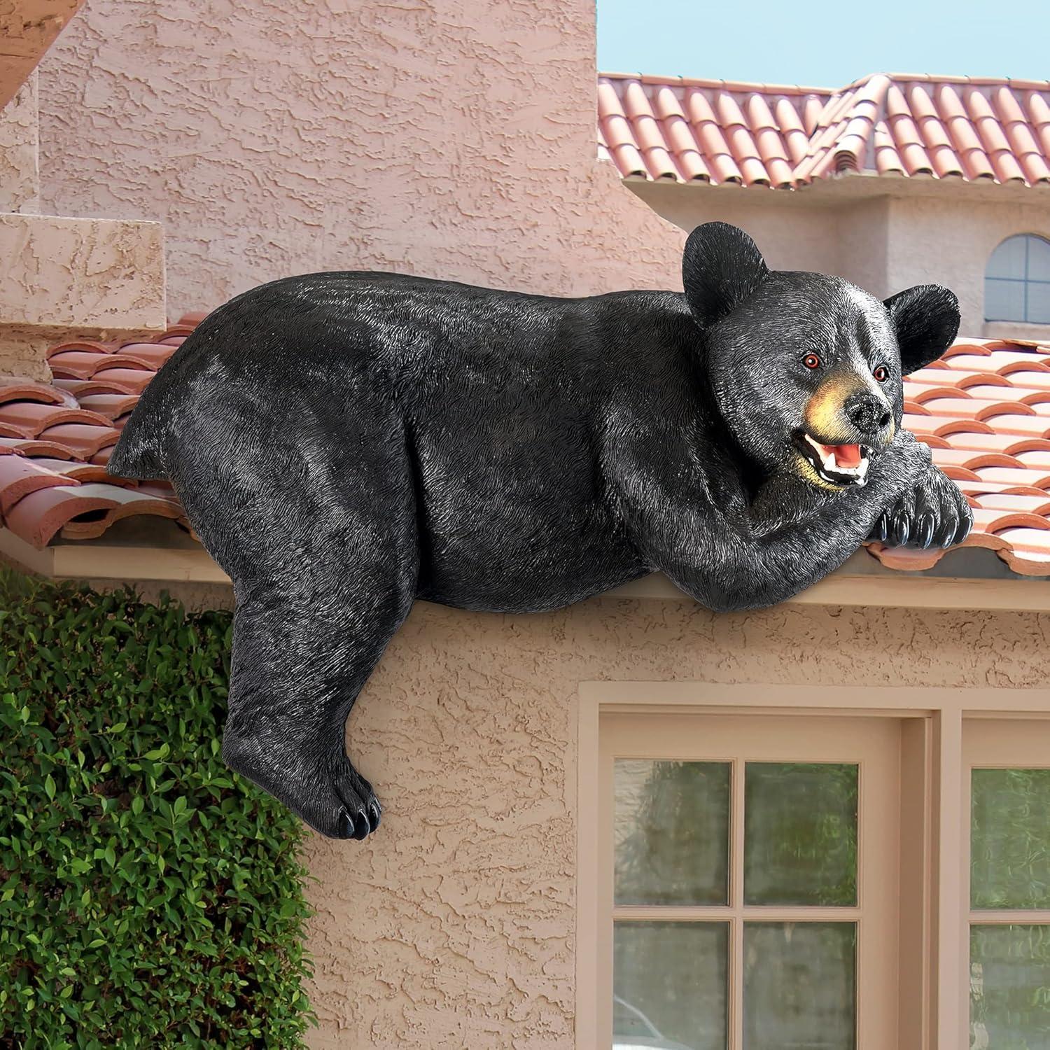 Coastal Decor Water Fountain with LED Light – Pelican’s Seashore Roost Garden Decor Fountain – Outdoor Water Feature, Full Color(Guzzling Gulp Black Bear)